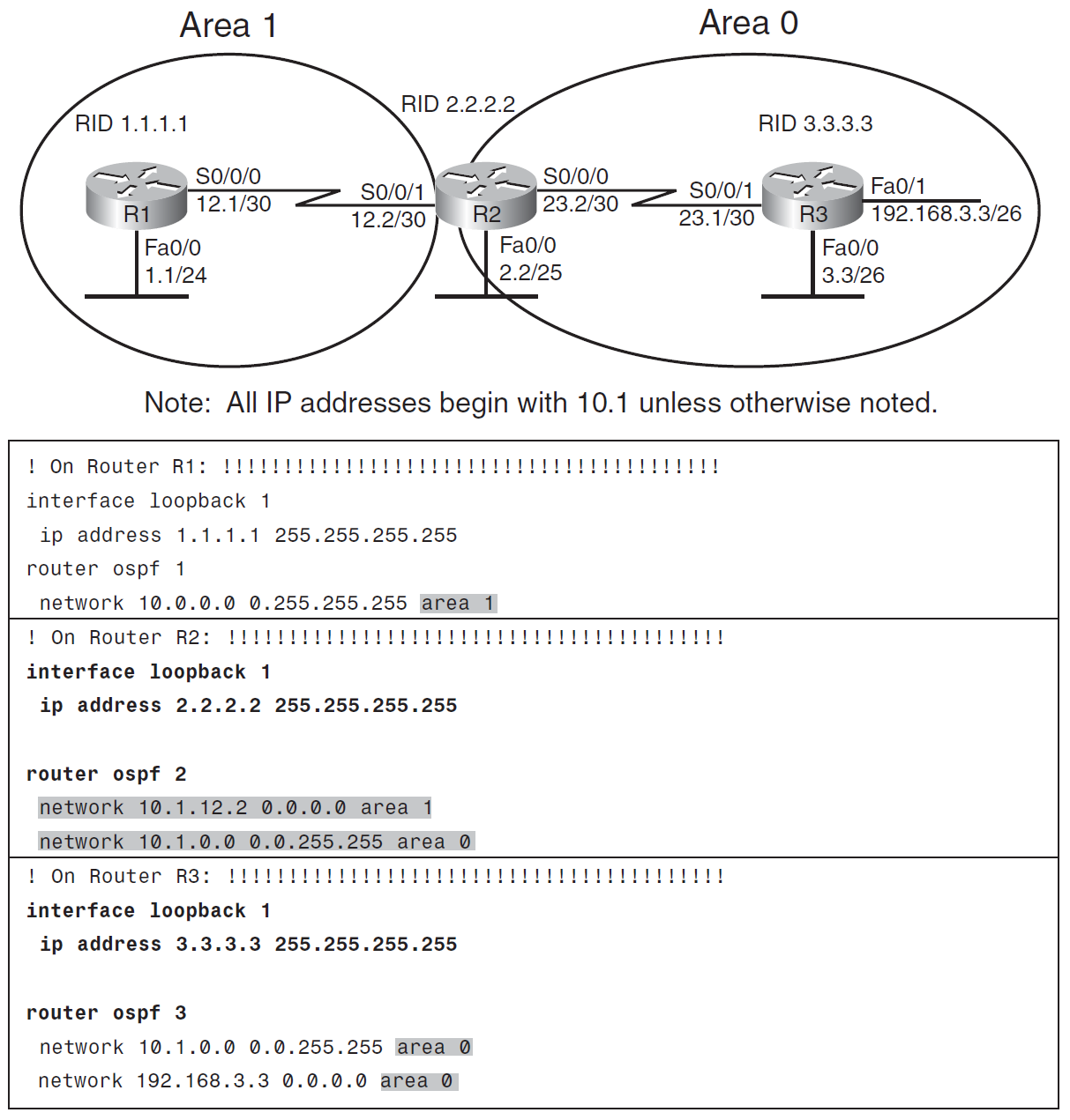 Router(config-router)# network 192.168.10.64 0.0.0.3 area 1