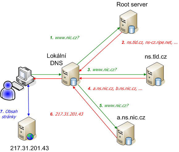rekurzivní řešení - používají ho lokální servery (postupné dotazování), výsledky si ukládají do cache