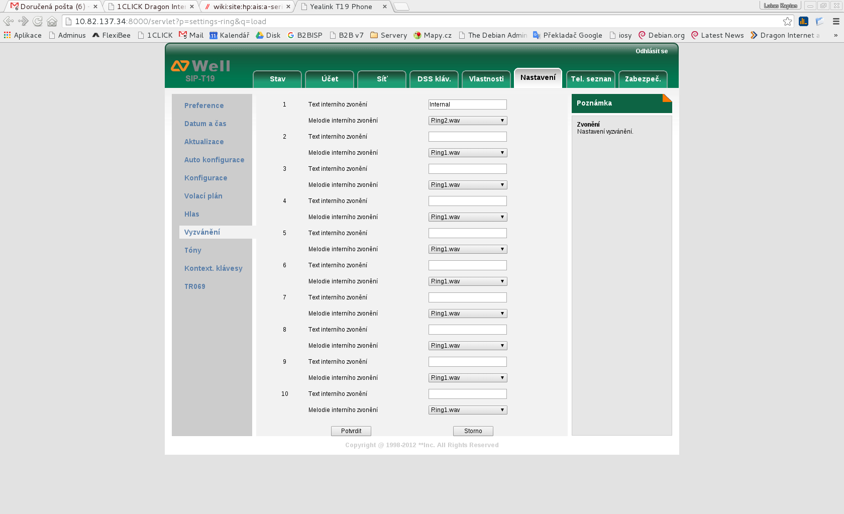 2. Nastavení → Vyzvánění → Text Interního zvonění: Internal